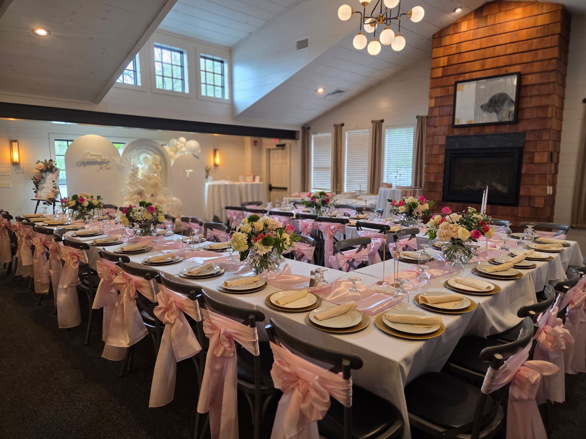 We are more than able to supply extra tables or space for gifts, props, decorations, and dancing. Please be advised that increasing the number of tables or the space needed decreases the available room for guests. In order to make sure your special day doesn't become overcrowded or uncomfortable, we suggest deducting 6 from the room's guest capacity for every addition.